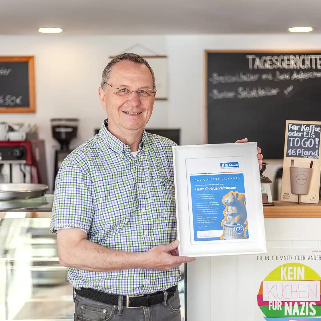 Heute durften wir eine ganz besondere Persönlichkeit im Landkreis Haßberge kennenlernen: Christian Wittmann, den neuen Träger des „Goldenen Eichhorns“. Mit großer Begeisterung und beeindruckender Hingabe schilderte er mir seine Motivation hinter einem bemerkenswerten Projekt – der Gründung eines Unverpackt-Ladens mit angeschlossenem Café.